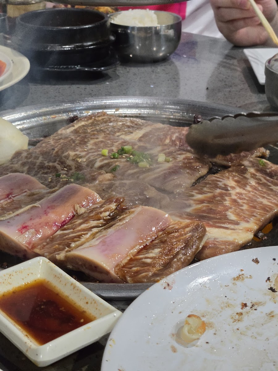 Stopped in for the first time with a group of friends for a weekday lunch, and we had a great experience overall. There was no wait when we arrived, and the service was impressively fast and attentive. We were a party of six and seated in a booth—it was a bit tight once all the delicious small side dishes, meats, and appetizers were laid out, but it was manageable. We tried a variety of meats and sides, and everything was fresh, flavorful, and well-prepared. If you enjoy seafood try the seafood pancake, it was fresh and tasty, probably my favorite out of everything we tried! This place is definitely worth a visit if you’re looking for a quick and satisfying lunch with a group. Just keep in mind that booth seating might feel a little cramped for larger parties.